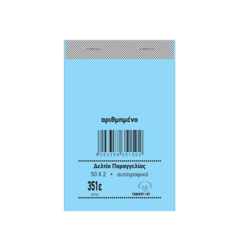 ΤΥΠΟΤΡΑΣΤ Δελτίο Παραγγελίας BAR 8×12 2/τυπο (Μπλε Αντίγραφο) Κωδ. 351ε