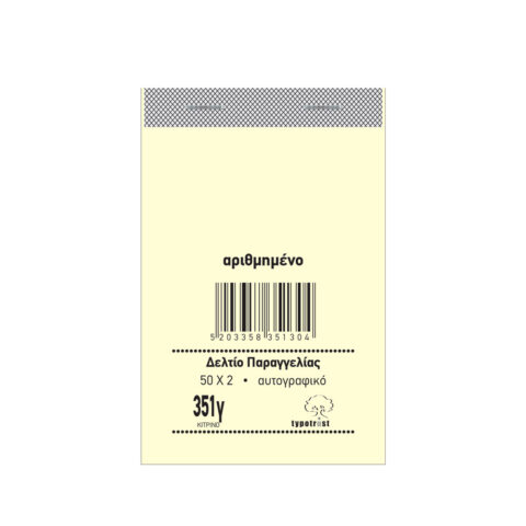ΤΥΠΟΤΡΑΣΤ Δελτίο Παραγγελίας BAR 8×12 2/τυπο (Κίτρινο Αντίγραφο) Κωδ. 351γ