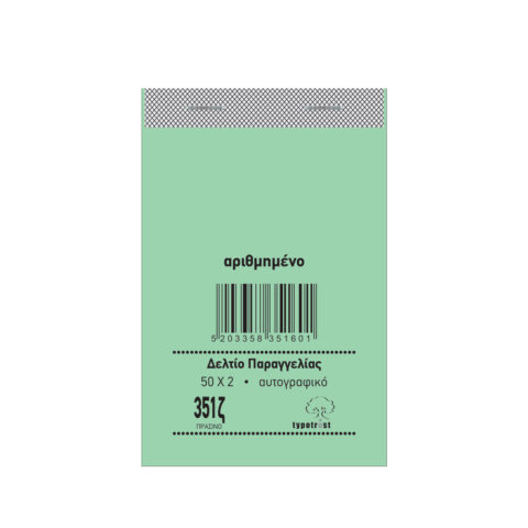 ΤΥΠΟΤΡΑΣΤ Δελτίο Παραγγελίας BAR 8×12 2/τυπο (Πράσινο Αντίγραφο) Κωδ. 351ζ