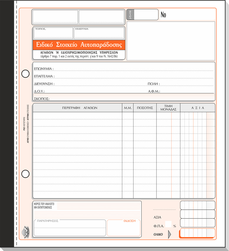 ΤΥΠΟΤΡΑΣΤ Ειδικό Στοιχείο Αυτοπαράδοσης 19x20cm 3/τυπη Κωδ. 352α