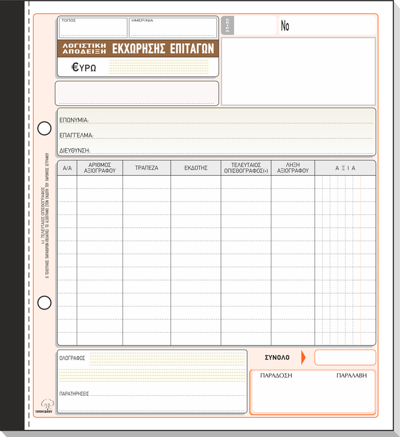 ΤΥΠΟΤΡΑΣΤ Λογιστική Απόδειξη Εκχώρησης Επιταγών 19x20cm 3/τυπη Κωδ. 298β
