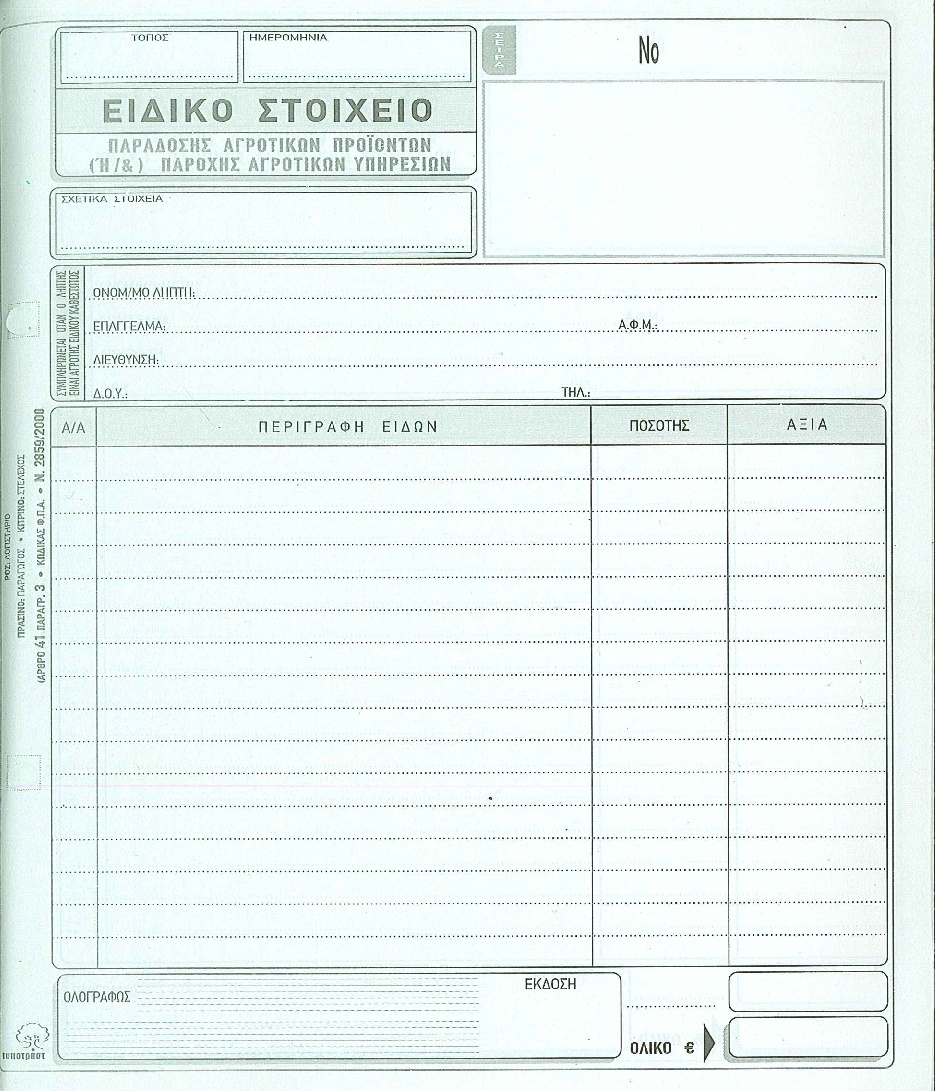 Αρχική σελίδα Λογιστικά Έντυπα     Έντυπα αγροτικών προϊόντων