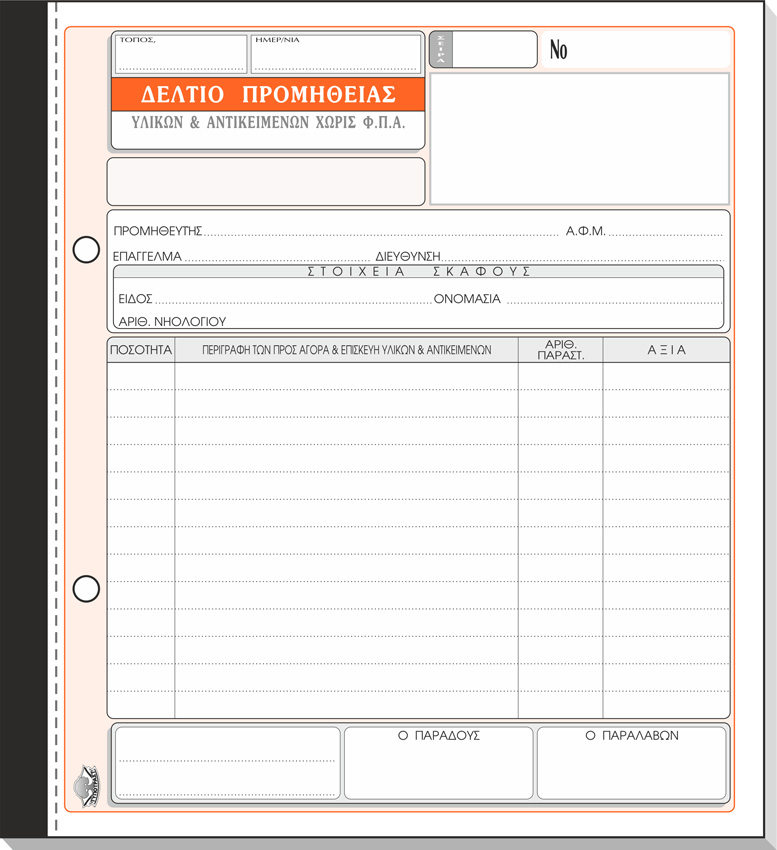 ΤΥΠΟΤΡΑΣΤ Δελτίο Προμήθειας (υλικών και αντικειμένων χωρίς ΦΠΑ) 19x20cm 2/τυπο Κωδ. 318
