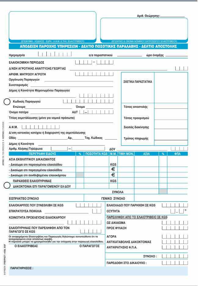 ΤΥΠΟΤΡΑΣΤ Απόδειξη Παροχής – Ποσοτικής Παραλαβής (για ελαιοτριβεία) 21x28cm 2/τυπο Κωδ. 352γ