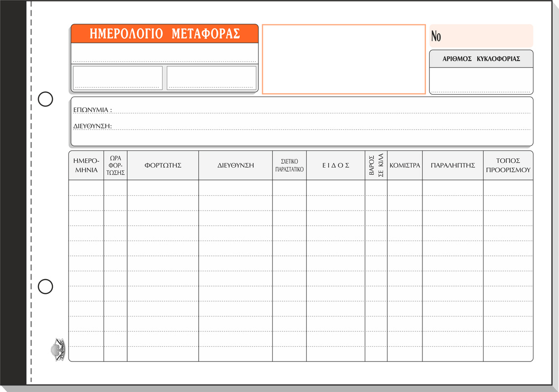 Ημερολόγιο Μεταφοράς 13×19 (Χωρίς Αντίγραφο) Κωδ.117