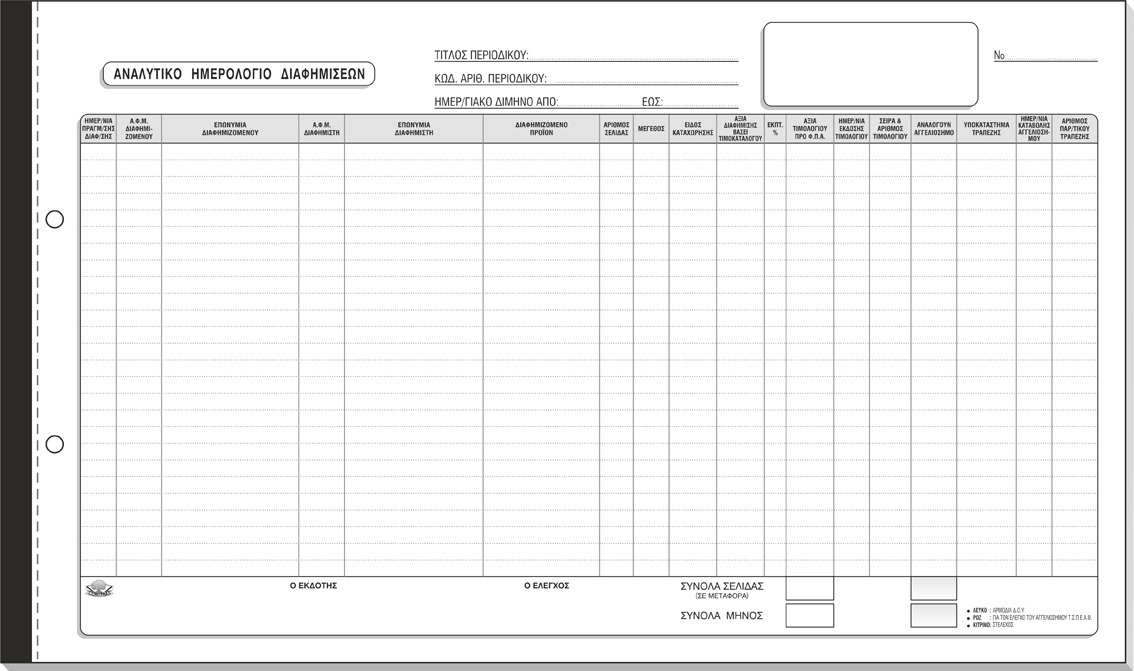 Αναλυτικό Ημερολόγιο Διαφημίσεων  Κωδ. 319