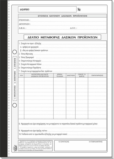 ΤΥΠΟΤΡΑΣΤ Δελτίο Μεταφοράς (Δασικών Προϊόντων) 19x20cm 3/τυπο Κωδ. 304
