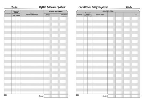Βιβλίο Εσόδων-Εξόδων (Ελεύθερων Επαγγελματιών) 21Χ29 50Φ. Κωδ. 70355