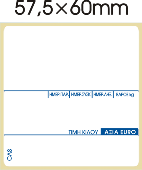 Αυτοκόλλητη θερμική ετικέτα για ζυγαριά Cas 57,5x60mm Μπλε Τύπωμα (500 ετικέτες)