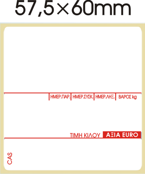 Αυτοκόλλητη θερμική ετικέτα για ζυγαριά Cas 57,5x60mm Κόκκινο Τύπωμα (500 ετικέτες)