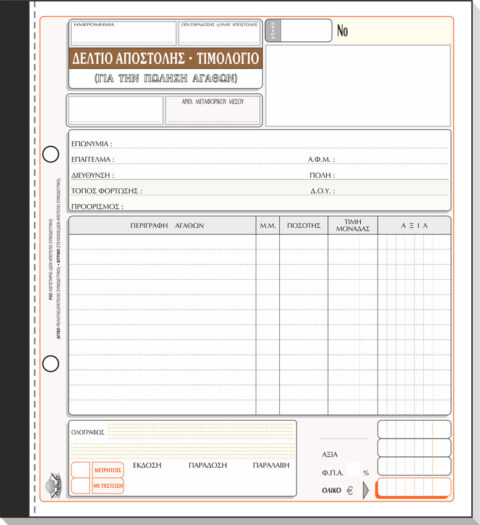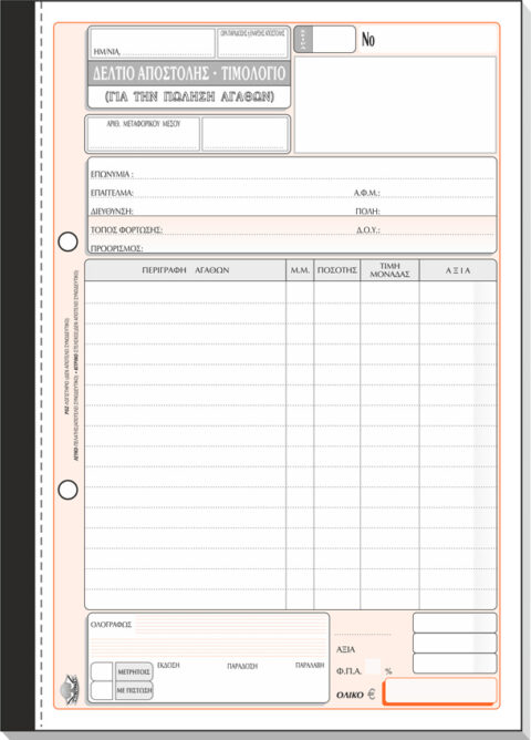 ΤΥΠΟΤΡΑΣΤ Δελτίο Αποστολής – Τιμολόγιο Πώλησης (1 ΦΠΑ) 17x25cm 3/τυπο Κωδ. 256α