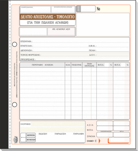 ΤΥΠΟΤΡΑΣΤ Δελτίο Αποστολής – Τιμολόγιο Πώλησης (1 ΦΠΑ) 21x28cm 3/τυπο Κωδ. 260