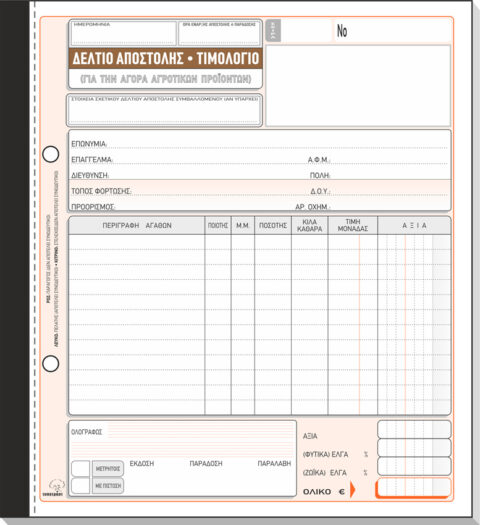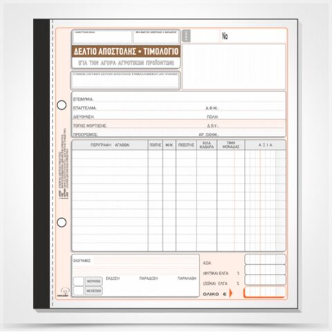 ΤΥΠΟΤΡΑΣΤ Δελτίο Αποστολής – Τιμολόγιο (για την Αγορά Αγροτικών Προϊόντων) 19×20 cm 4/τυπο Κωδ. 265γ