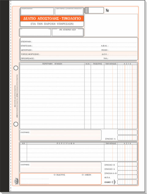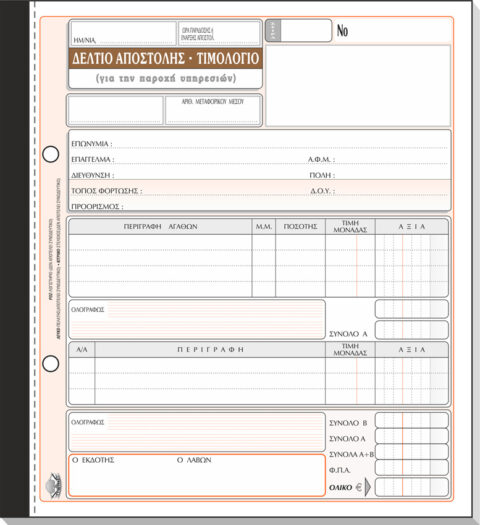 ΤΥΠΟΤΡΑΣΤ Δελτίο Αποστολής – Τιμολόγιο Παροχής Υπηρεσιών 21x28cm 3/τυπο Κωδ. 266β