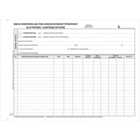 ΤΥΠΟΤΡΑΣΤ Δελτίο Απασχολούμενου Προσωπικού σε Αγροτικές/Αλιευτικές Εργασίες 21x29cm Κωδ. 317